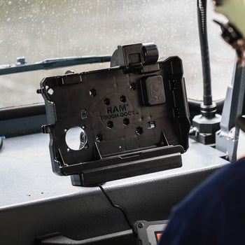 The RAM® Form-Fit Locking Powered Dock for Getac ZX80 (RAM-HOL-GE5PKLU) allows you to secure the device and keep it charged through the pogo pin contacts while docked—power is provided by connecting to the dock's 5.5mm DC power jack. Upgrade this with any combination of compatible accessories including the RAM® Temp-Right™, Vent-Temp™, RAM® NFC Extender, and D size VESA base. Additional compatibility for Getac accessories include the Standard & High capacity batteries as well as the 2-Point Shoulder Strap. Take the solution a step further by taking advantage of the included 2-hole side bracket, compatible with RAM® 2-hole diamond bases for additional device mounting such as a phone or other handheld device.