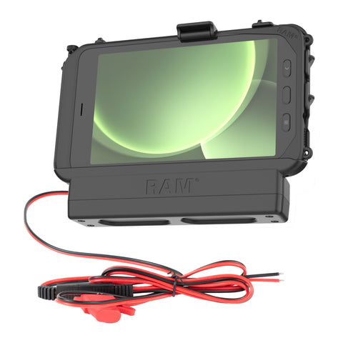 - RAM® EZ-Roll'r™ Powered form-fit dock provides charging capabilities for the Samsung Galaxy Tab Active5, Tab Active3 and 2 through integrated pogo pin connector and built-in hardwire charger.