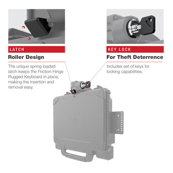 This key-locking RAM® Dock (RAM-HOL-ZE22LU) features a non-powered form-fit design specifically for the Zebra ET8x tablets. Made for versatility out in the field, this dock supports the device with or without the Rugged Frame, and accommodates the optional Friction Hinge Rugged Keyboard. Thoughtfully designed, this dock also allows space for tablet add-ons such as the Zebra Expansion Back, GDS® Roto-Mag™, and GDS® Hand-Stand™ ergonomic accessories. Embrace the weather with options to upgrade your dock with temperature modules. The RAM® Temp-Right™ can be added to regulate heat in extremely cold environments while the RAM® Vent-Temp™ utilizes the vehicle's A/C vents to direct hot or cold air to the ET8x. Take the solution a step further by upgrading to an add-on NFC Repeater module that extends the device's internal NFC reader. Pair this with the docks built-in 2-hole mounting plate compatible with RAM® 2-hole diamond base for mounting the NFC Repeater, or any other additional device such as a phone, scanner, or printer.