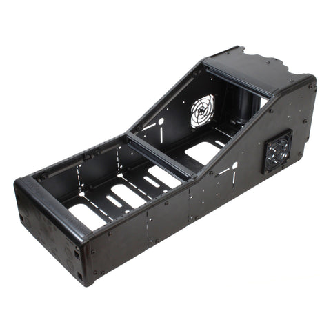 The RAM® Tough-Box™ Angled Console - No Poles (RAM-VCA-101NPA) is designed for durability, performance, and maximum versatility in extreme environments. Constructed from high-strength composite, steel, and aluminum, this console is built to last. Its molded edge components create a seamless, secure fit while eliminating sharp corners for enhanced safety. The Tough-Box™ not only exceeds safety expectations for both drivers and passengers but also comes pre-assembled for quick and easy installation. Installers will appreciate its simple design, reducing time spent on setup and electronic servicing. Fleet managers will benefit from the lightweight construction, leading to improved fuel efficiency.