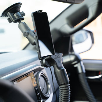 This RAM® Vent-Temp™ temperature module accessory (RAM-VENT2-RCT-50U) installs to the front of any RAM® or GDS® dock and attaches to rectangular A/C vents using included zip ties. This version of the RAM® Vent-Temp™ directs air produced by your vehicle's A/C system to either cool, or heat up the front of the docked phone or tablet. This is ideal for environments where the tablet needs to be cooled off or heated up to maintain operating temperatures during critical work functions, or to defrost the front of the device to keep your touchscreen operable. When installed correctly and vent cover is attached to a rectangular air vent, both the hose adapter and front dock attachment feature integrated magnets for easy break-away when the RAM® Vent-Temp™ is not needed, or gets caught on something that could tug on the hose. The 50" included flexible hose can be cut to the desired length of reach from vent to dock.