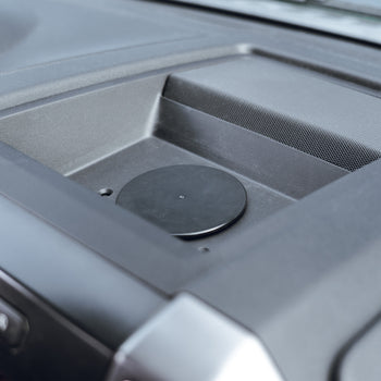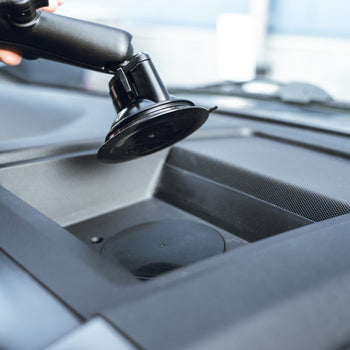 The RAP-350-35BU, 3.5" diameter round disk with adhesive, is a great mounting surface to attach a suction cup system. Simply stick the the plate to any surface and then attach the suction cup to the plate. This is perfect when you need to attach your suction cup mount to your car dash vertically or horizontally, rather than to your windshield.
